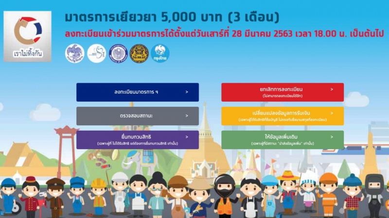 โดยเปิดเริ่มให้ลงทะเบียนผ่านระบบออนไลน์ ที่เว็บไซต์ www.เราไม่ทิ้งกัน.com มาตั้งแต่วันที่ 28 มีนาคม และได้โอนเงินในช่วงรอบที่ 1-4 ตั้งแต่วันที่ 8-21 เมษายน รวม 4.2 ล้านกว่าราย ยอดเงิน 3 หมื่นกว่าล้านบาท